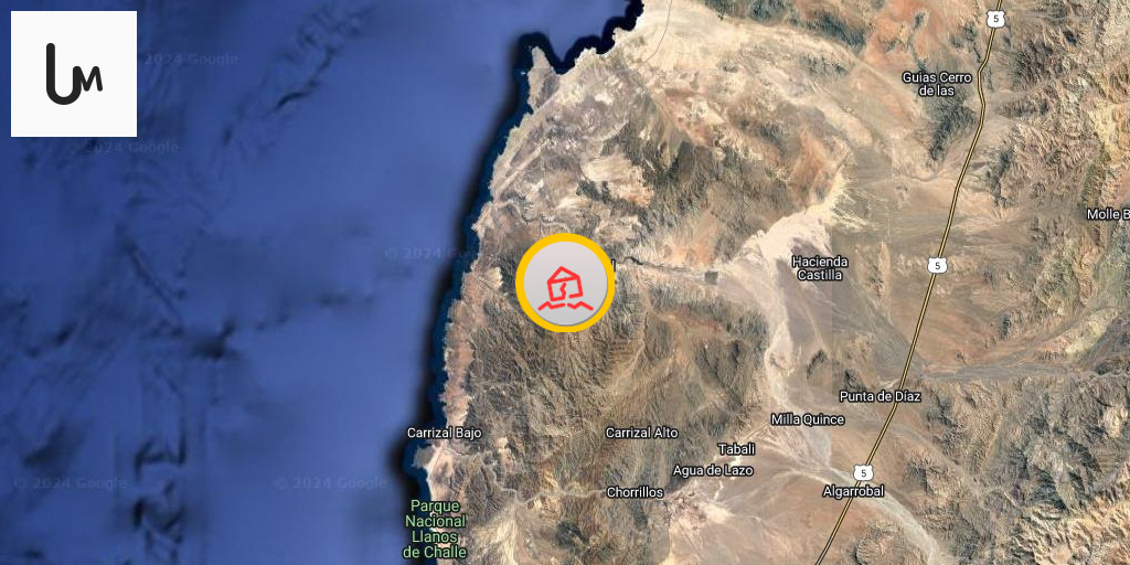 Earthquake of magnitude 5.0 - 76 km NNW of Vallenar, Chile